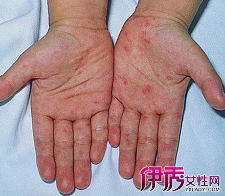 急性起病,发热、口痛、厌食、口腔黏膜出现散在疱疹或溃疡,位于舌、颊黏膜及硬额等处为多,也可波及软腭,牙龈、扁桃体和咽部。手、足、臀部、臂部、腿部出现斑丘疹,后转为疱疹,疱疹周围可有炎性红晕,疱内液体较少。手足部较多,掌背面均有。皮疹数少则几个多则几十个。消退后不留痕迹,无色素沉着。部分病例仅表现为皮疹或疱疹性咽峡炎。多在一周内痊愈,预后良好。部分病例皮疹表现不典型,如单一部位或仅表现为斑丘疹。