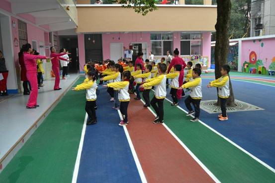 为了规范幼儿广播体操动作及进行园内自制体育器械让全体幼儿更多的进行户外运动,发展幼儿大肌肉运动的协调能力,更好地达到强身健体的作用,11月2日上午,我们举行了“我运动,我健康”大班组幼儿广播体操比赛及自制体育器械展示。