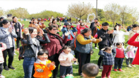 到达樱花园,我们首先来到一个大草坪进行亲子游戏活动。首先的音乐律动把现场所有的家长和小朋友都带动起来,第一个游戏活动《钻山洞》的小组比赛,让不认识的家长都团结起来,孩子们在大人搭建的山洞里兴奋快乐的玩耍着,后面的《马兰花开》和《亲子运气球》游戏大人小孩更是一片欢声笑语,把此次活动推入了高潮。