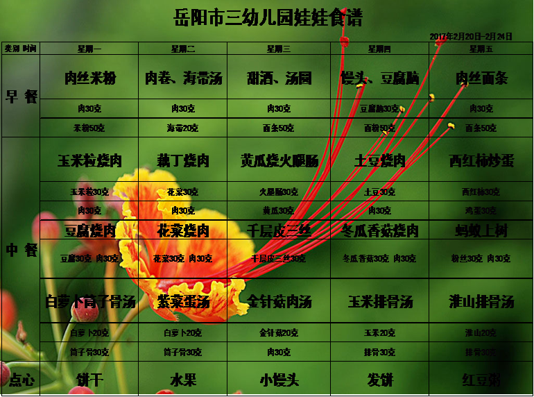 岳阳市三幼儿园2017上学期第二周食谱