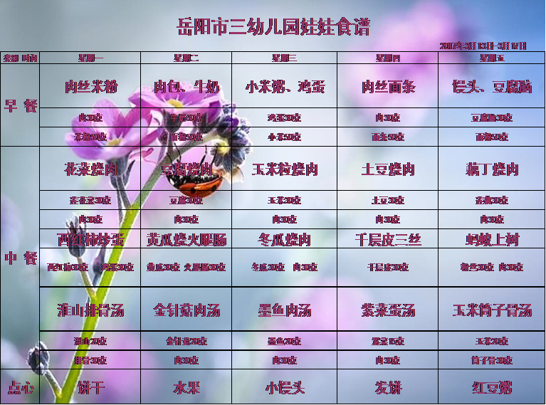 岳阳市三幼儿园2017年上学期第五周食谱