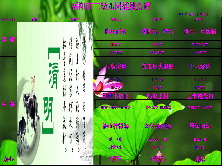 岳阳市三幼儿园2017年上学期第八周食谱