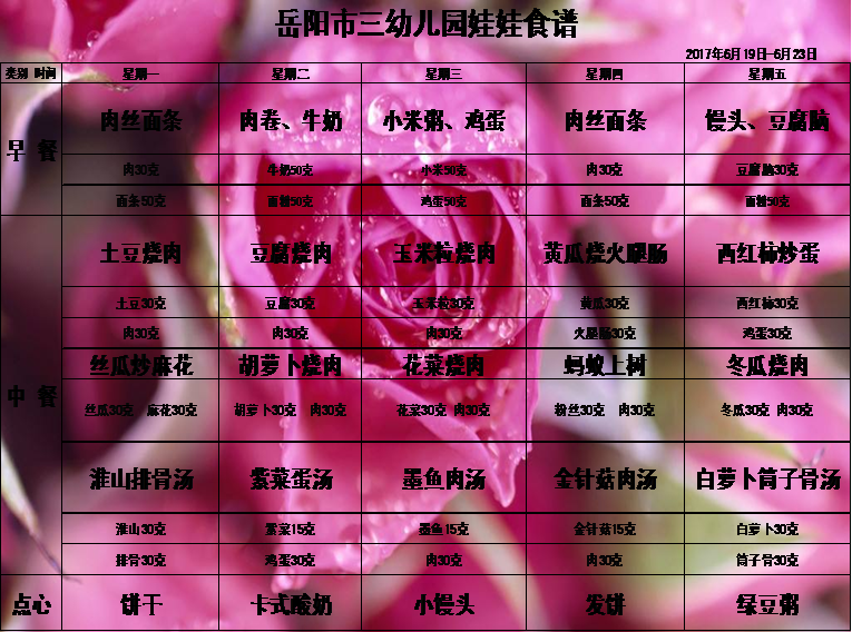 岳阳市三幼儿园2017上学期第十 九周食谱