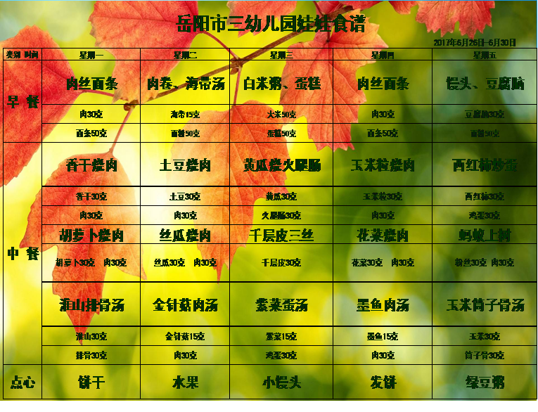岳阳市三幼儿园2017上学期第二十周食谱