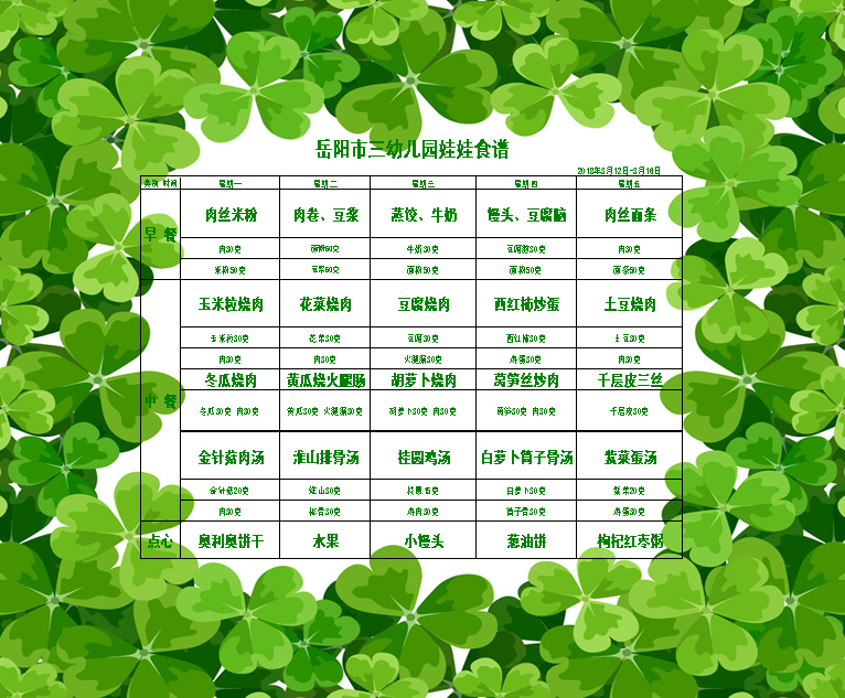 岳阳市三幼儿园2018年上学期第二周食谱