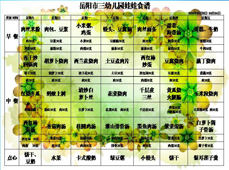 岳阳市三幼儿园2016年下学期第七周食谱