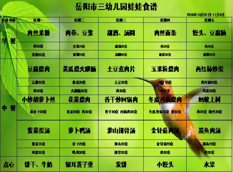 岳阳市三幼儿园2016年下学期第十周食谱