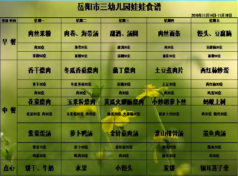 岳阳市三幼儿园2016年下学期第十二周食谱