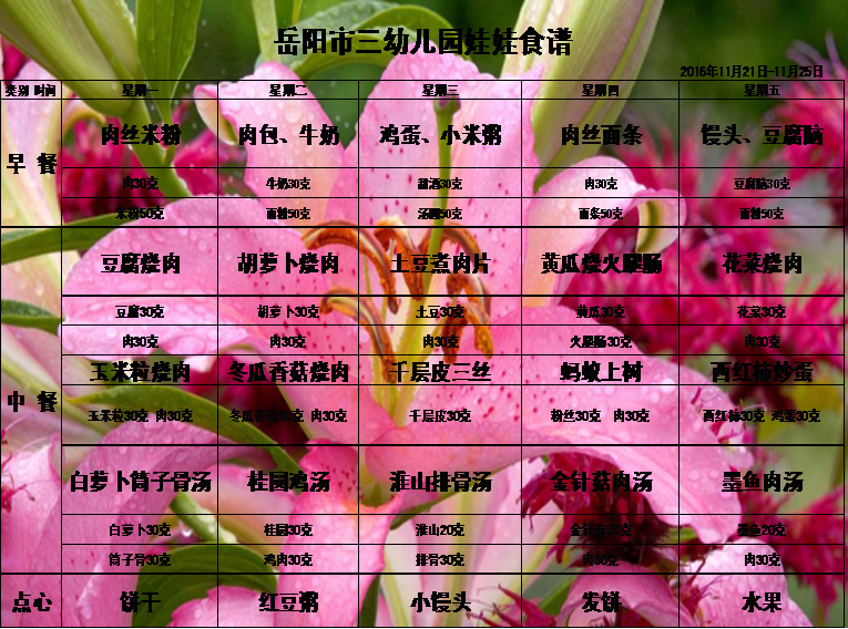 岳阳市三幼儿园2016年下学期第十三周食谱