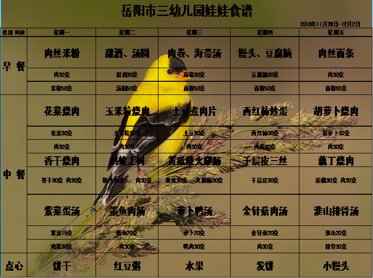 岳阳市三幼儿园2016年下学期第十四周食谱