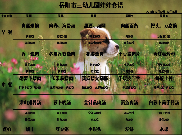 岳阳市三幼儿园2016年下学期第十六周食谱
