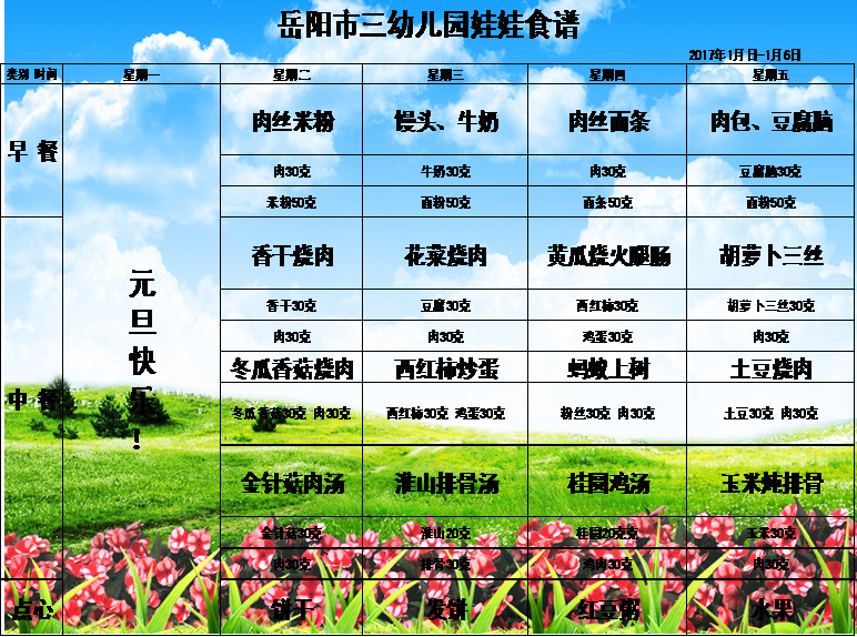 岳阳市三幼儿园2016年下学期第十九周食谱