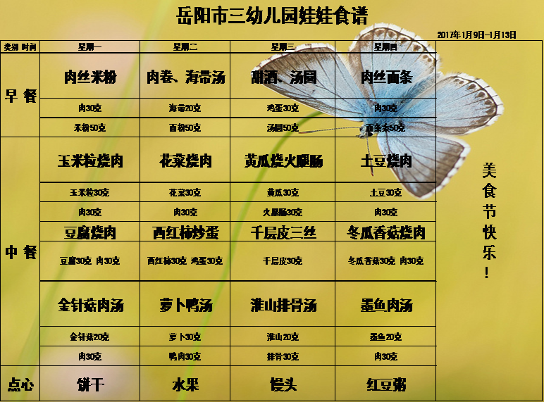 岳阳市三幼儿园2016年下学期第二十周食谱