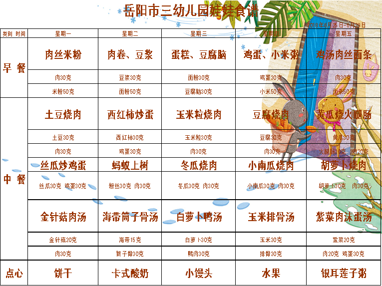 岳阳市三幼儿园2018年上学期第十七周食谱