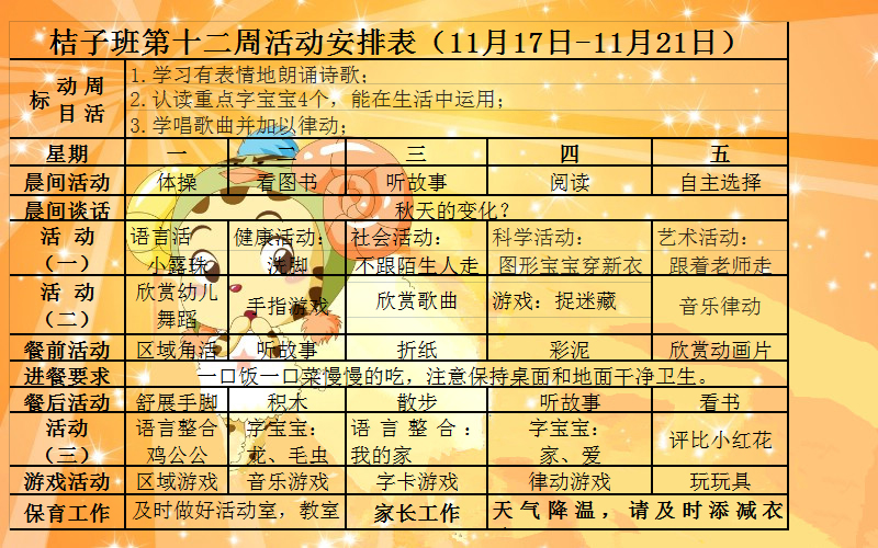 桔子班第12周活动安排