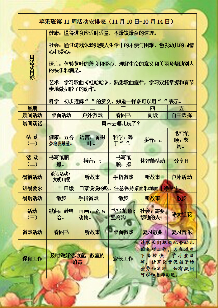 苹果班第11周活动安排