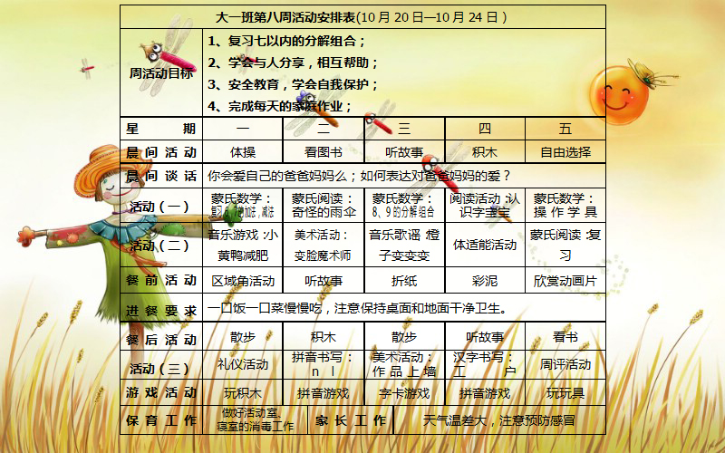 芒果班第八周活动安排