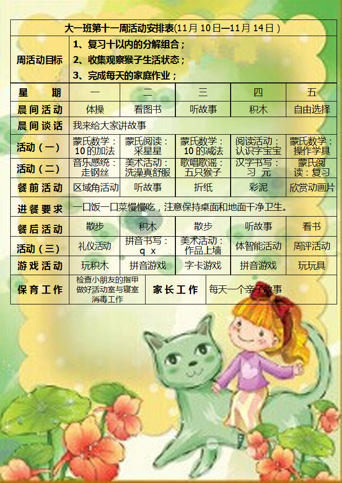 芒果班第11周活动安排
