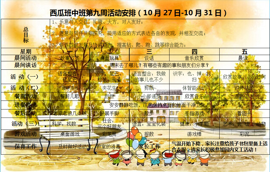 西瓜班第九周活动安排
