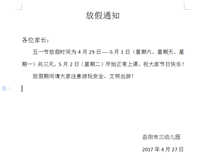 五一放假通知