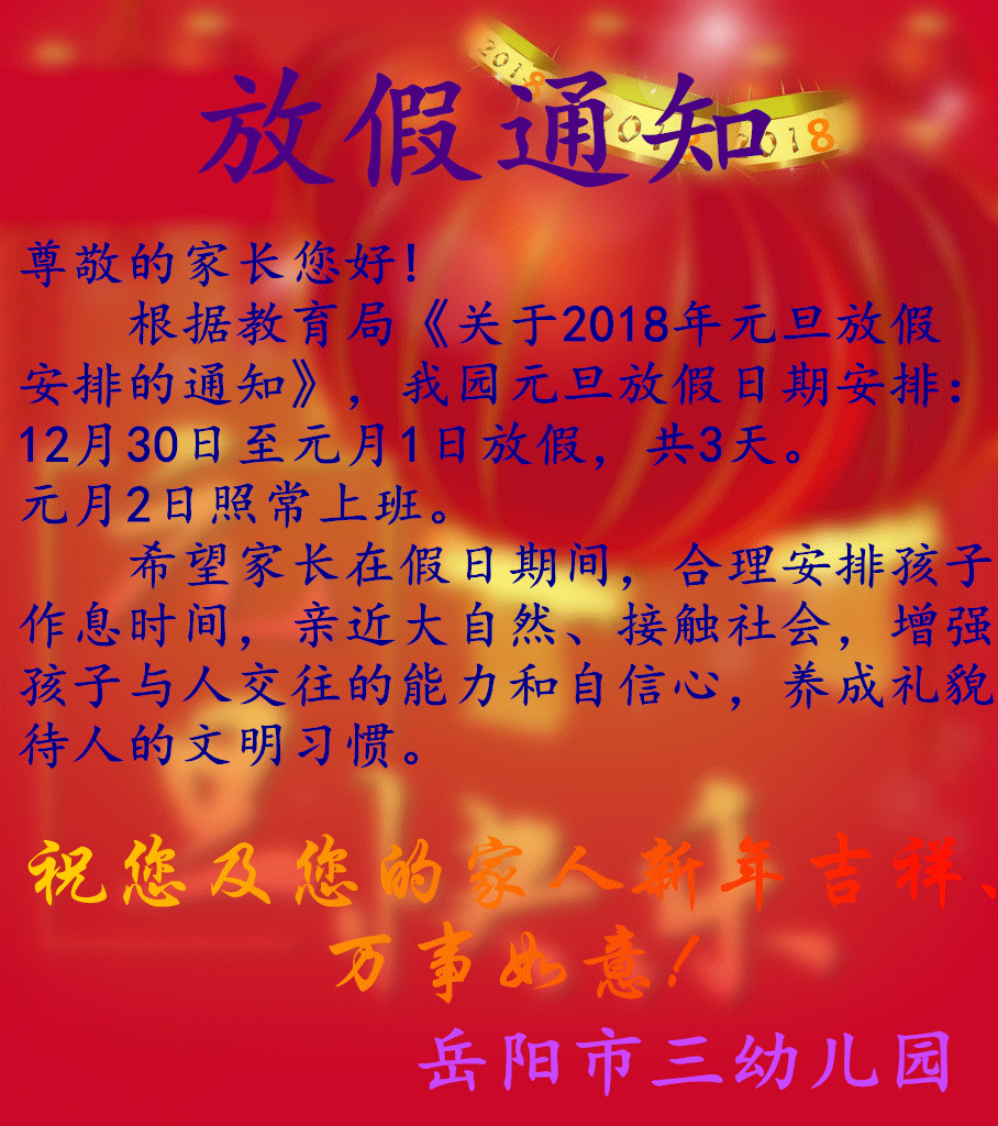 元旦放假通知