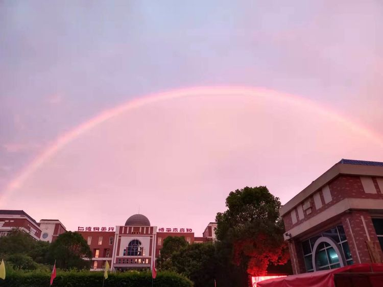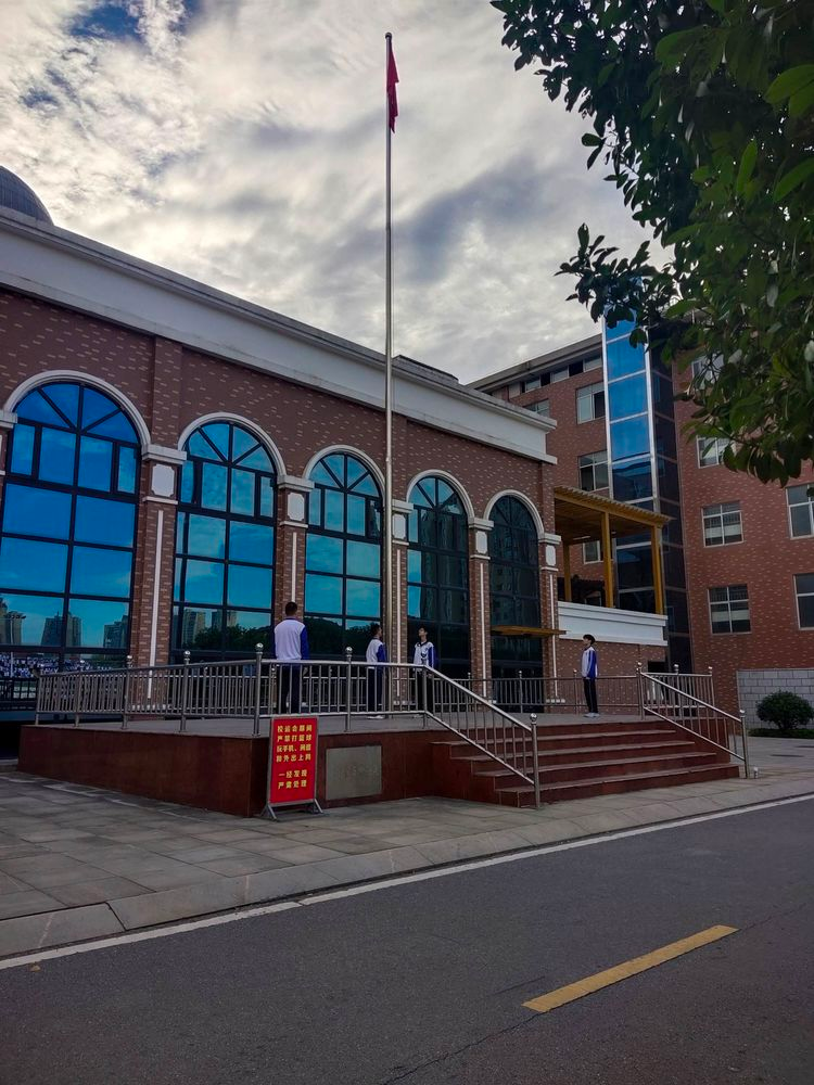 入场式后是庄严的升旗仪式,雄壮的国歌声中,师生共唱,五星飘扬。