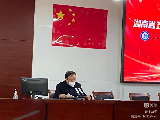 会议第三项,由岳阳市十五中教学副校长易孔山代表轮值主席校对共同体一年的工作作出总结报告。易孔山副校长先从“教育质量提升”方面总结了共同体在2022年度高考录取的高位进步;接着从“创新成果丰硕”方面总结了共同体各校2022年度在教研教改和学校管理上作出的卓有成效的探索和研究;最后,易孔山副校长特别提出,2022年是携手前行的团结之年,总结了2022年度共同体在备课组长会议、学科教学竞赛、各年级联考、高三复习研讨、教育教学管理经验分享等多项工作任务中交流合作的累累硕果。
