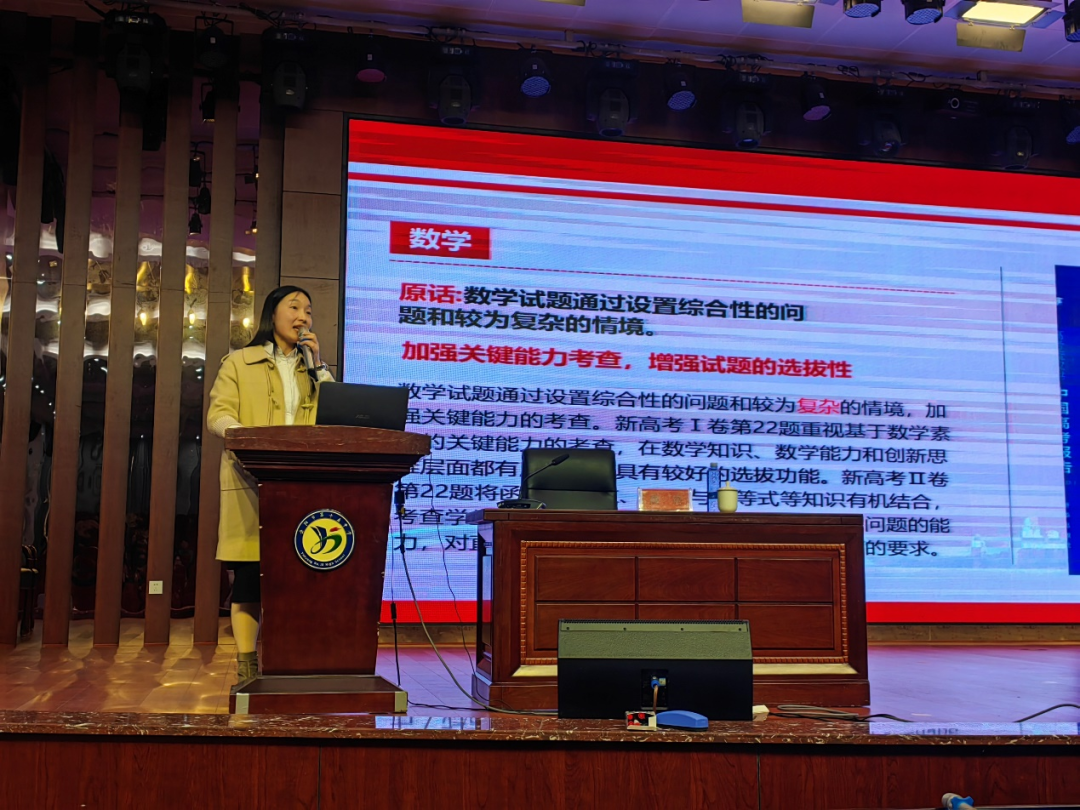 湖南省资深数学专家唐亮老师深研新高考、深读新课标,深入探讨了高考的命题方向,作了《强化“主干”提能力,活化“思维”成素养》专题讲座、他提出: 面对基于素养的情景化题型,要“不畏情遮望眼,读想写算长期练”;面对新题型,要“试题好似万花筒,动则千变,静则归原”。唐老师强调教师应研究学情,重视培养学生的逻辑推理和数学运算能力,精准备考。