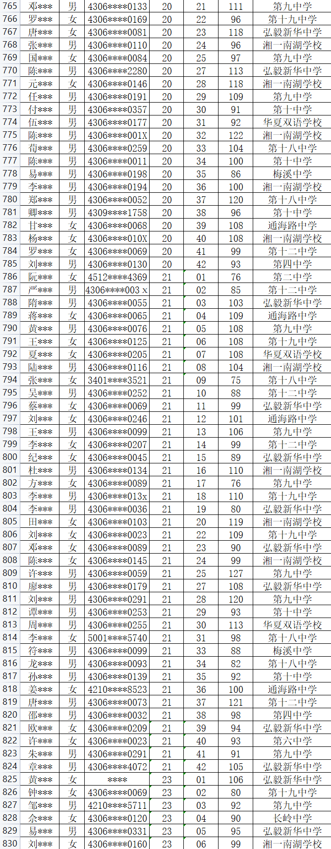 根据岳阳市教体局《2023年岳阳市市区普通高中招生工作方案》和《2023年岳阳市第十五中学拔尖创新人才培养基地班招生工作方案》,我校于6月24日对报考我校且符合条件的考生进行了现场测试,现将测试成绩公示如下: