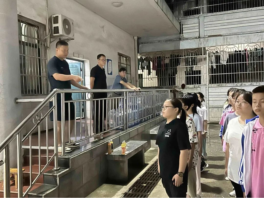 岳阳市第十五中学党委书记廖小光、校长吴樵夫对高一新生军训工作非常重视,一直关注着每一个班级的具体参训情况。并亲临训练场地,巡视了各班训练情况,了解学生在军训中的表现。看到了学生坚定的眼神和笔直的身姿,予以高度评价。并与十五名班主任进行了亲切的交流:军训不仅可以培养学生的纪律性和团队合作精神,更是锻炼学生意志力和坚韧精神的最佳路径。特别强调了班主任工作的重要性。班主任是学生成长道路上最重要的引路人,是学生的情感寄托和精神支柱。在军训中,班主任要格外关心爱护学生,给予他们更多的指导和鼓励。