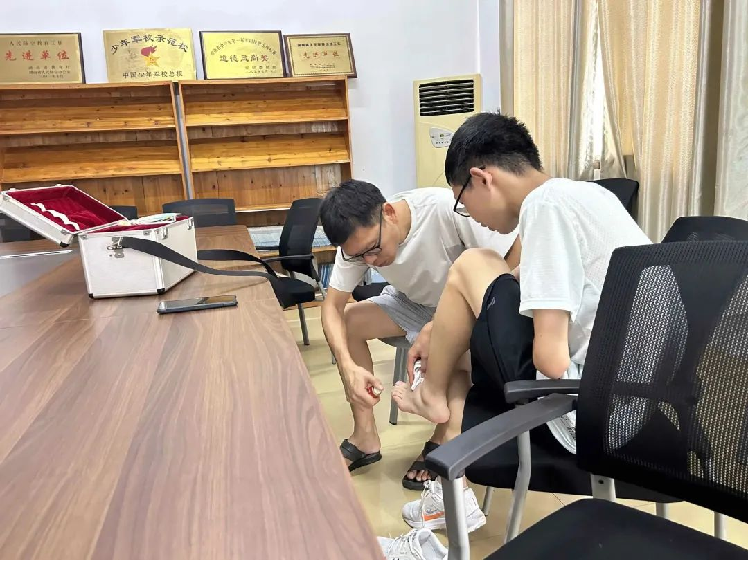 他们不是训练场的主角,却处处可见他们的身影。从晨曦到夜幕,他们的陪伴不曾缺席。从操场到食堂至宿舍,他们都会护航不曾远离。他们是每一位陪伴同学们站在烈日下的教官,用严格的纪律与恰当的氛围让同学们能在坚持不下去的时候感受到教官榜样的力量。他们也是每一位班主任,在同学们身心俱疲时鼓励开导、理解与支持。他更是时时站在所有同学背后的校医,保护每一位同学的身体健康。