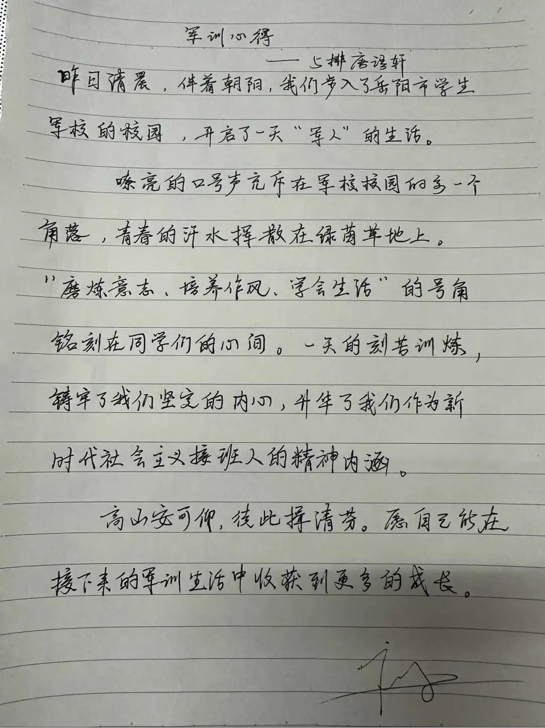 一支队伍自成长龙,令行禁止;踏步声整齐如鼓点,奏响的是洞庭湖畔的战歌;教官的一声令下,同学们迅速蹲下。无数次的演练,换来了此刻的整齐和默契。每个人的脸上都写满自信与朝气,各个连的风采与精神面貌都在一次次气势如虹的喊口号中展现。迎风的旗帜,整齐的踏步,灿烂的笑容,这便是青春最美好的模样。