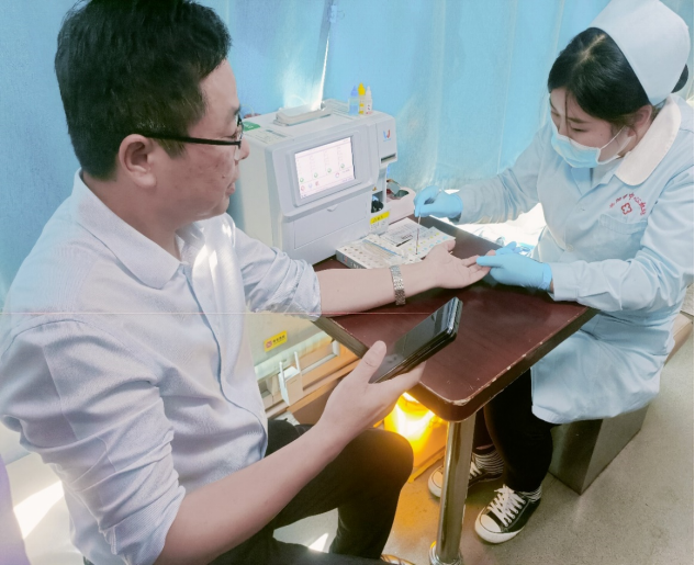 在学校工会主席赵艾武老师的带领下,十五中教师们纷纷参与到无偿献血的队伍中来,他们遵照医务人员要求,认真填写献血信息表,按序进行身体检查和血样采集,仔细聆听医生讲解献血过程中应该注意的事项。随后,符合献血条件者陆续登上献血车,开始献血。