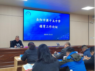 冬至阳生,数九辞岁。为全面贯彻党的立德树人政策,深入探索我校仁雅德育实践方法,落实我校全员育人导师制,提升教师德育理论素养和育人能力,2024年1月15日在仁智楼四楼会议室我校举行了岳阳市第十五中学2023年度德育工作论坛。本次论坛主要包括专家授课、2023年德育工作总结、优秀德育论文和班级表彰、班主任工作案例分享、2024年德育工作展望等五个议程。校党委书记廖小光、党委副书记、校长吴樵夫及全体班子成员出席本次论坛,论坛由我校德育处主任刘桂华老师主持。