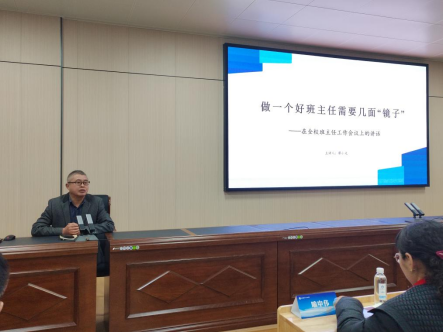 廖书记最后做了总结发言,他指出:“班主任是一个专业工作,需要极高的教育智慧、管理艺术、道德修养、沟通能力以及成熟稳健的人格。”他认为,做一名好班主任需要六面“镜子”,一是树立理想,用望远镜站高看远看广;二是富有爱心,用散热镜、放大镜欣赏、鼓励学生;三是引领家长,用追光镜与家长统一战线,实现家校共育;四是规范管理,用平面镜建立机制,梳理班级制度;五是弘扬正气,用照妖镜正视学生问题,因势利导,扬长避短;六是稳定情绪,用凹凸镜、吸光镜、聚能镜直面问题、处理问题,设法改变。总之,廖书记鼓励全体班主任及青年教师要用坚定的教育理念、敏锐的观察能力、灵活的教育方法、良好的沟通能力、丰富的教学经验、良好的情绪管理能力、优秀的组织能力、积极的学习态度、饱满的工作热情、崇高的道德品质武装自己,做一个优秀的德育工作者,当一个幸福的班主任!