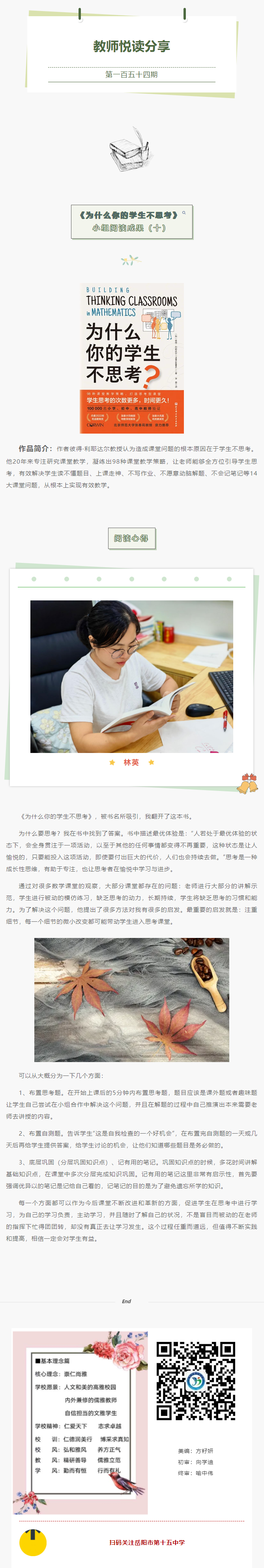 岳阳市第十五中学“星火悦读计划”——教师悦读分享(第一百五十四期)