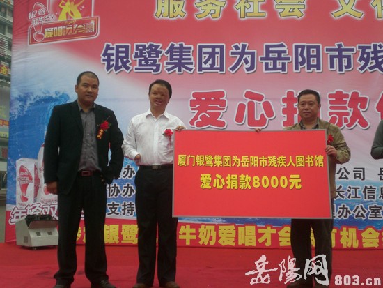 本次活动得到了厦门银鹭食品集团的大力支持与赞助。厦门银鹭食品集团秉承“服务社会、文化助残”的宗旨,在活动现场向岳阳市残疾人图书馆捐赠现金8000元,并表示今后会持续对残疾人图书馆进行捐助。
