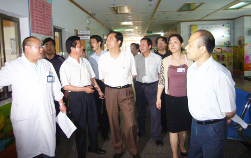 图为省残联谭奇元副理事长一行参观岳阳市肢体、智力残疾儿童康复技术指导中心