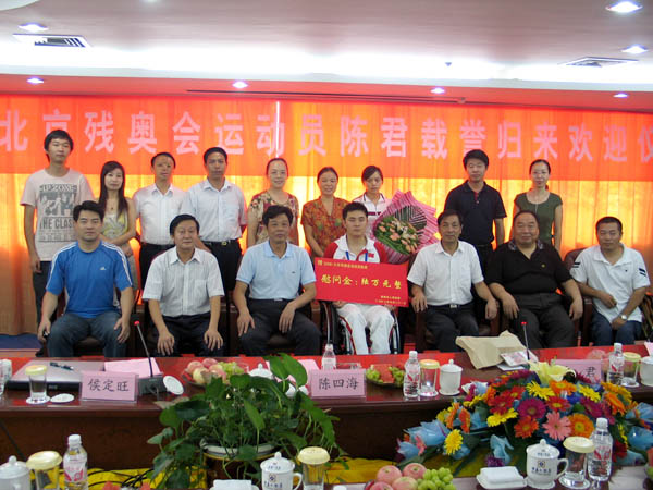 2008年9月21日,市政府举行仪式热烈欢迎北京归来的残奥运动员陈君