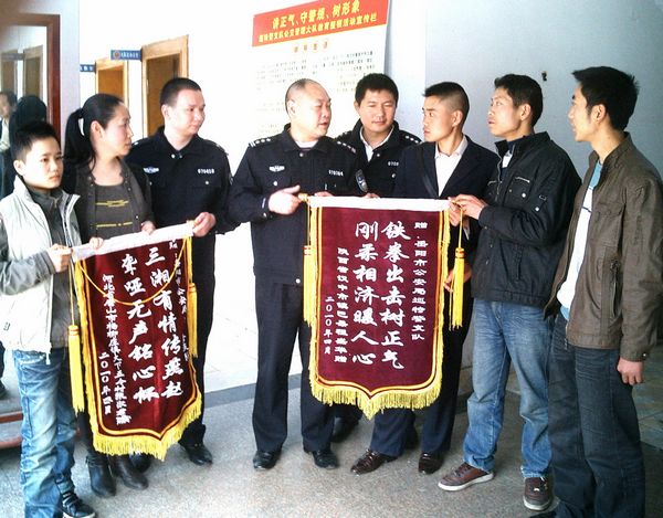 4月29日上午,见到了被拐一月多的弟弟程盛林,和一年多音讯全无的侄女张路平后,从陕西赶到岳阳的程盛华与河北的张淑君,各将一面锦旗送到了岳阳市公安局巡特警支队公交管理大队,感谢岳阳民警将他们的亲人从可怕的魔窟中解救出来。
