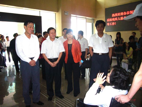 市人大常委会主任李湘岳一行首先逐层参观了岳阳残疾人服务中心,对岳阳市残联在服务中心内创办的残疾人辅助器具中心、假肢装配矫形中心、爱弥尔自闭症儿童康复训练中心、952116声讯服务残疾人就业基地、残疾人图书馆、残疾人舞蹈排练厅、残疾人奥林匹克举重训练室和智障人士托养基地康馨益智院阳光家园等16个为残疾人量身打造的服务项目给予充分肯定,对岳阳市残联忠实履行“代表、服务、管理”职能,全心全意、脚踏实地为残疾人服务的做法给予高度评价。