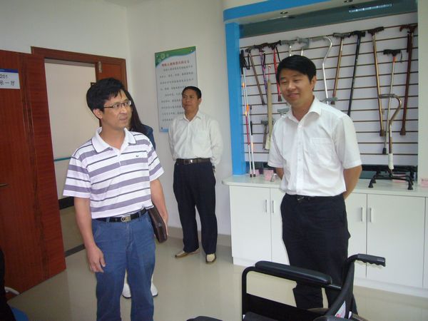 向科军副理事长向邹序明副馆长介绍残疾人辅助器具配送情况