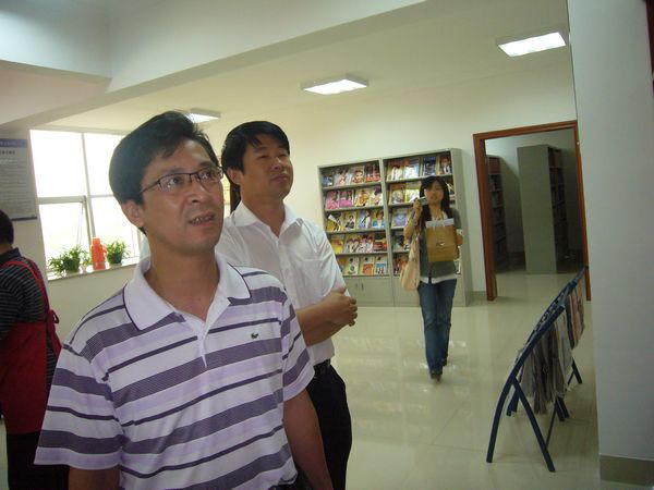 图为邹序明副馆长在向科军副理事长的陪同下参观岳阳市残疾人图书馆