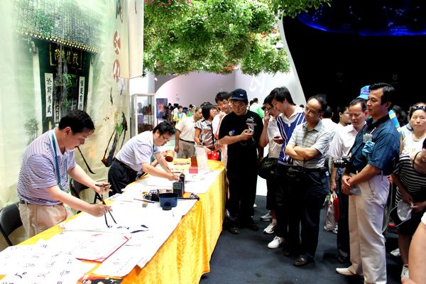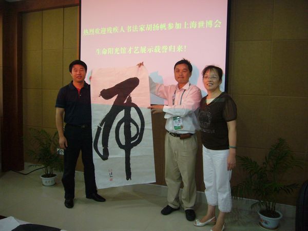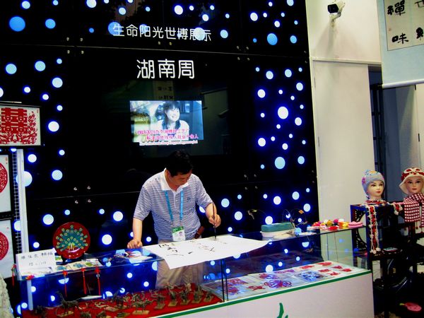 胡扬帆在上海世博会生命阳光馆挥毫泼墨