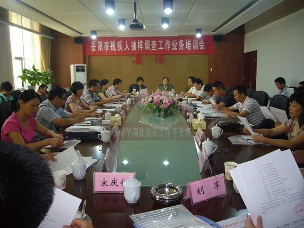 为深入贯彻落实中共中央、国务院《关于促进残疾人事业发展的意见》精神,针对性地做好岳阳市残疾人康复、扶贫、教育、就业、文化体育、权益保障等方面工作,增强残疾人参与社会生活的能力,全面推动“两个体系”建设,根据《湖南省残疾人联合会关于开展残疾人家庭及综合服务设施情况调查工作的通知》,岳阳市残联定于9月6日至9月15日,在全市范围内开展一次残疾人及其家庭和残疾人综合服务设施情况抽样调查活动。为扎实做好相关工作,确保抽样调查工作圆满完成,8月31日,岳阳市残联召开了残疾人抽样调查工作业务培训会,市残联副理事长沈楠和国家调查局岳阳调查队副队长刘爱玲出席会议并讲话,市残联办公室、康复科、维权科负责人和12个县市区残联分管副理事长、办公室主任和信访维权股长参加会议。