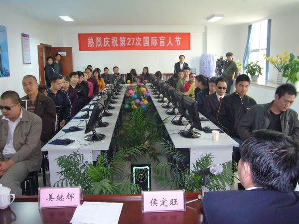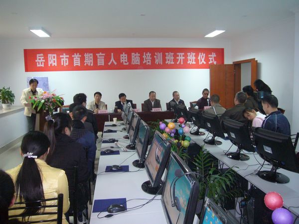 图为岳阳市首期盲人电脑培训班开班仪式