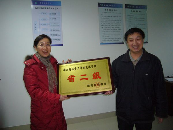 办公室主任蔡亦民接受了“档案工作规范化管理省二级”牌匾