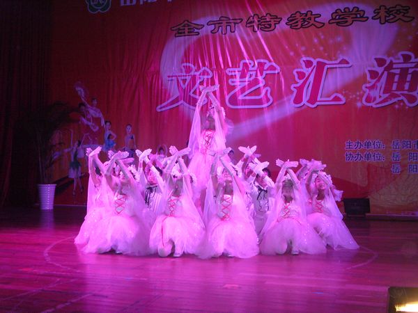 岳阳市、平江县、岳阳县、湘阴县、汨罗市和华容县等6所特教学校活泼可爱的聋哑小演员们,在没有声音、没有音乐更没有节奏的世界里,竟然踩准音乐的节拍表演了10个精彩的歌舞和小品节目,他们的身形舞姿和面部表情完美地吻合了节目主题,富有极强的表现力和感染力,令全场观众无不感动和赞叹。“我不仅是用眼睛来仔细欣赏他们,我更是在用我的心灵深深地品味和体会他们,这一群特殊孩子表演的节目具有一般正常演员难以诠释的特殊的艺术内涵!”来自市文化广电新闻出版局的一位观众激动地对记者说。