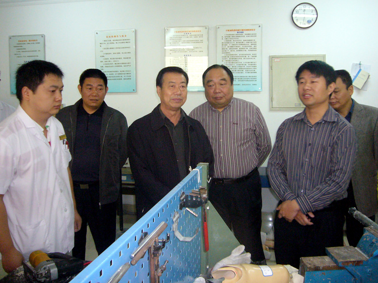 陈志刚会长和刘树平局长向向科军理事长、李正望副理事长了解我市假肢生产的情况
