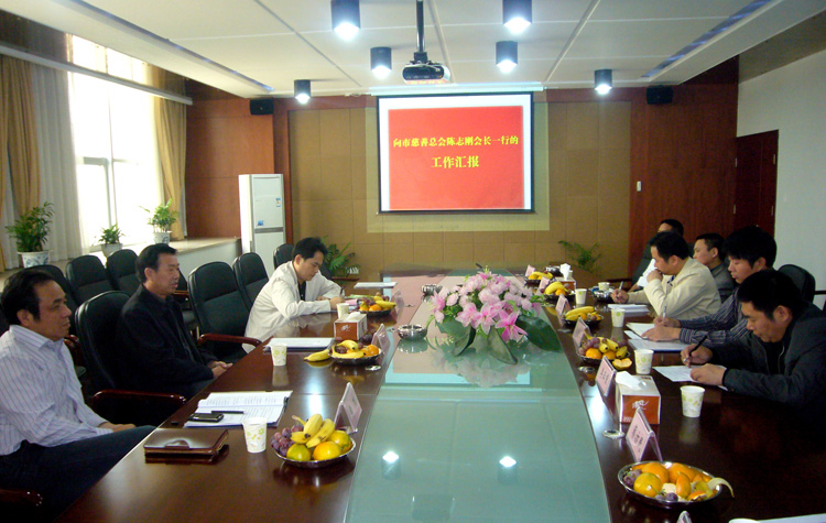 “向慈善总会陈志刚会长一行的工作汇报”现场